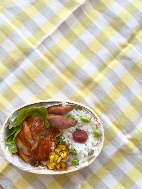 色うつりが心配だったので、私も今回、大きめのおかず(ハンバーグ)はクッキングシートを敷いてから詰めました。