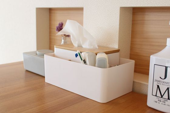 体温計の定位置は、ダイニングテーブルに置かれたこちらのティッシュボックスケースの中。