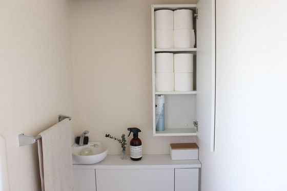 トイレにはサッと掃除できるよう、ワンプッシュで使える「アルコールスプレー」を使用し、マットなど布製品は置かないことで掃除のハードルを下げています。