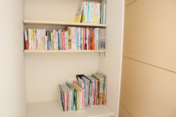 デッドスペースに少し手を加えたことで、壁面収納としてのスペースが確保され、溢れていた多くの本をスッキリ収めることができました。