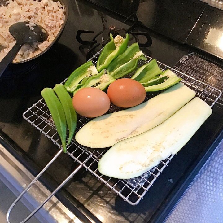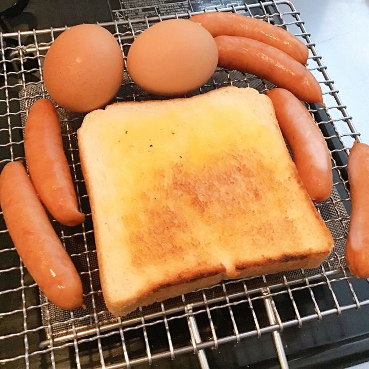 忙しい朝でも、この焼き網1つで、全部焼くことができます。