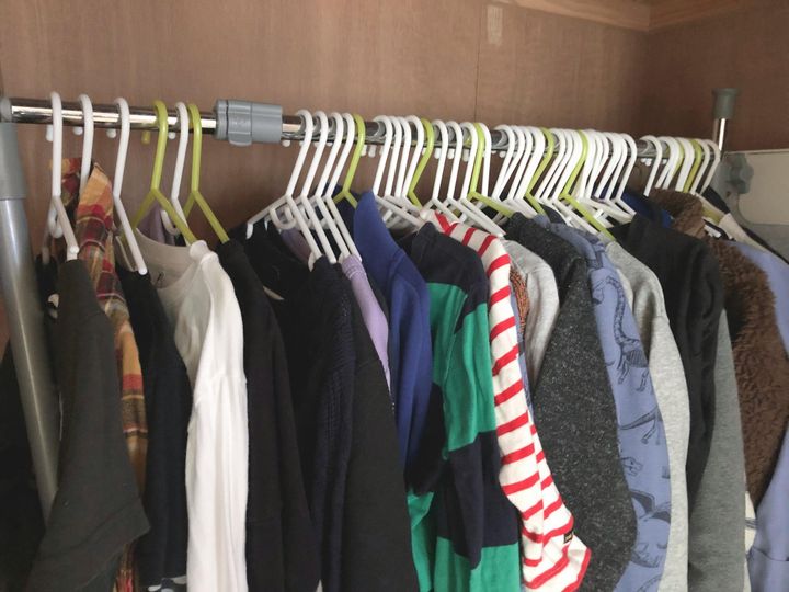 (子供の服だけでなく、私や夫の服も基本的にハンギング管理です。)