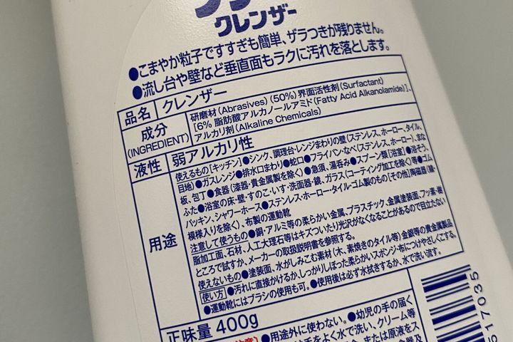 各ご家庭のシンク材質によっては、劣化する場合もありますので、研磨材の比率などを確認されてから使用されてくださいね。
