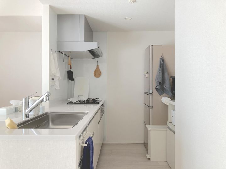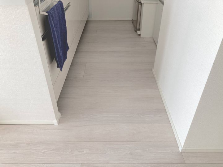 これはキッチンに限らずですが、マットは脱衣所以外置いていません。入居時は透明のマットを敷いていましたが、床とマットの隙間にもゴミが入ることが気になりました。