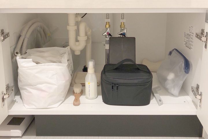 以前は洗面台下やシンク下など、奥行きのある収納場所には雑に物を詰め込みがちで、奥の物が把握しにくい状態でした。