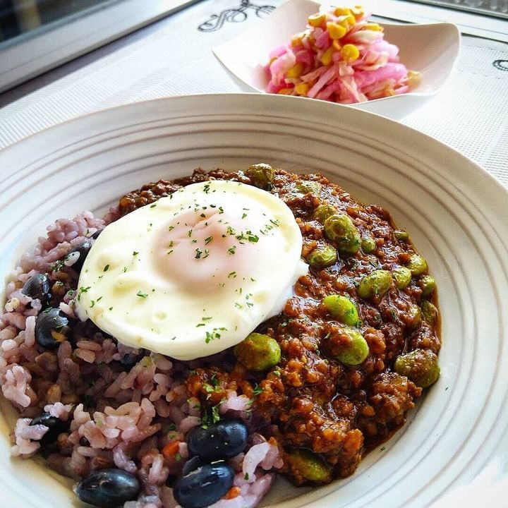 これだけで、おいしく栄養豊富な黒豆ご飯が出来上がります。私は、黒豆ご飯をキーマカレーにして頂きました。