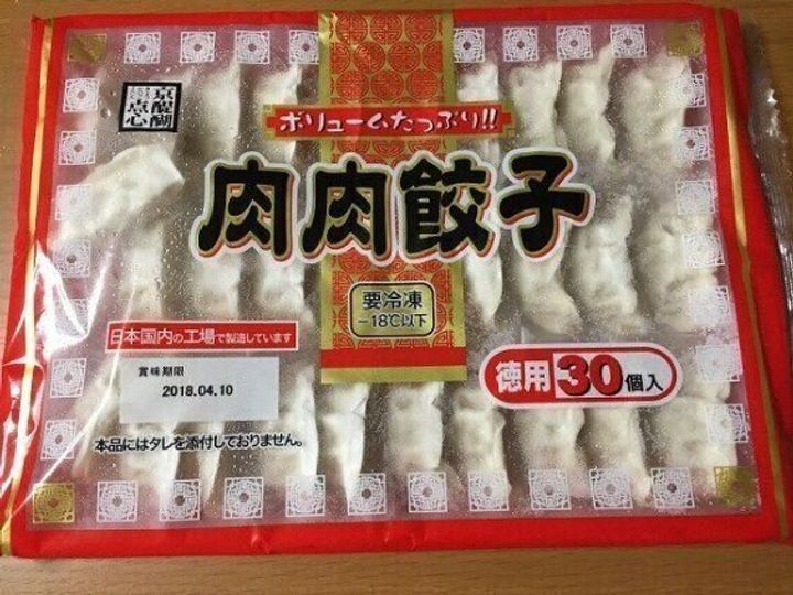 赤いパッケージの肉肉餃子と、