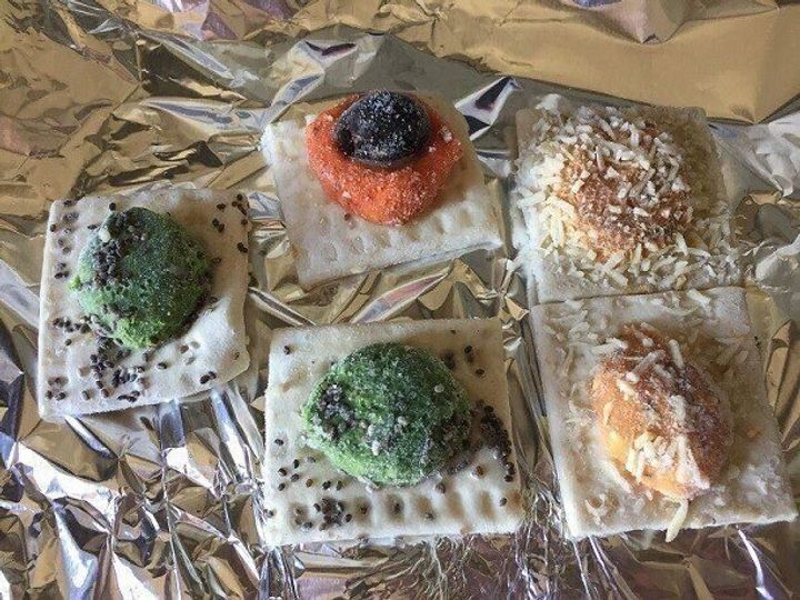 冷凍のカナッペ、トースターで焼くだけですぐに食卓に出せます。
