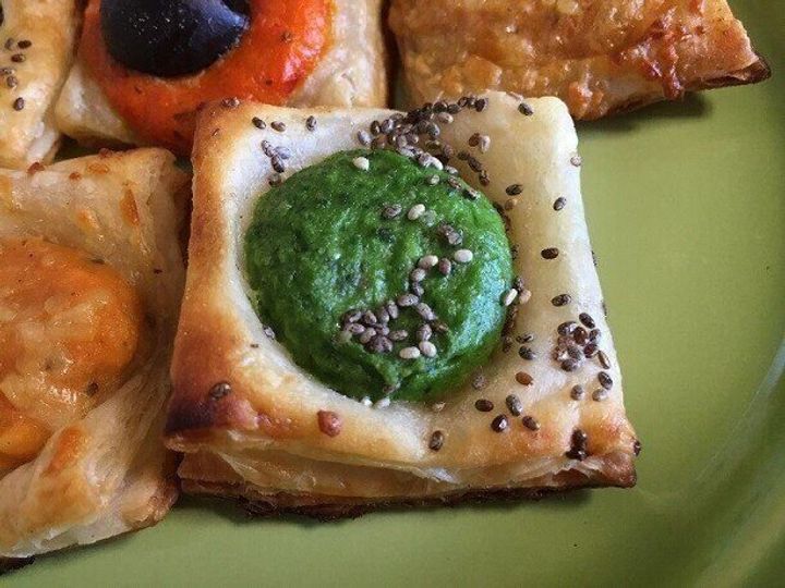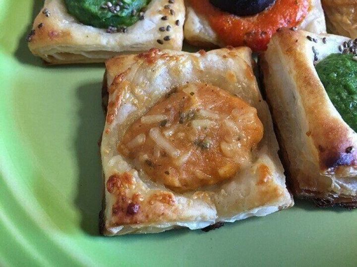 トマト&モッツァレラ、リコッタ&ほうれん草、パプリカ&ブラックオリーブの3種類が入っています。