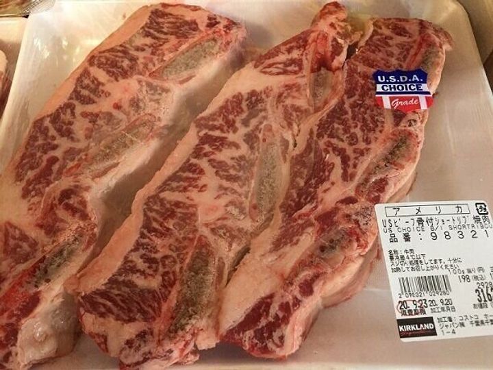 精肉売り場の新商品はアメリカ産ビーフ骨付きショートリブです。別名骨付きカルビですね。