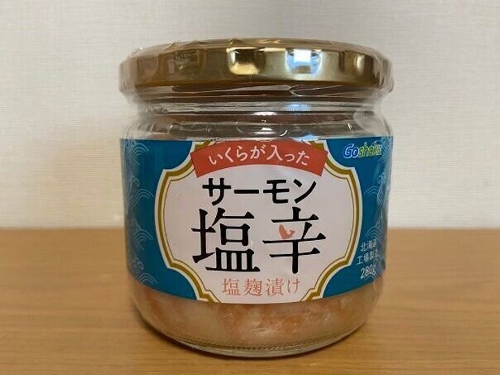 塩辛といえばいかが一般的ですが、こちらは珍しいサーモンの塩辛で、いくらも入っているという贅沢な一瓶。280g入りです。