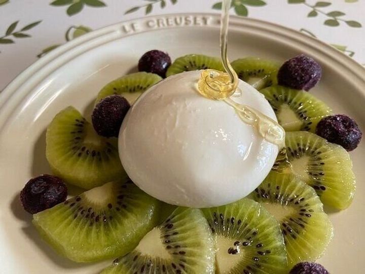 ブラータに蜂蜜をかけて、たっぷりのフルーツとともに♪