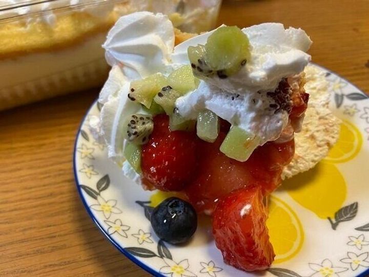 フルーツをちょい足しして、とっても豪華なケーキに仕上がりました。