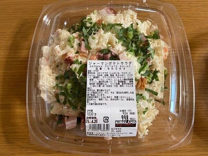 サラダの新商品はたっぷり1kg入り!ジャーマンポテトサラダ(購入時価格:998円)です。