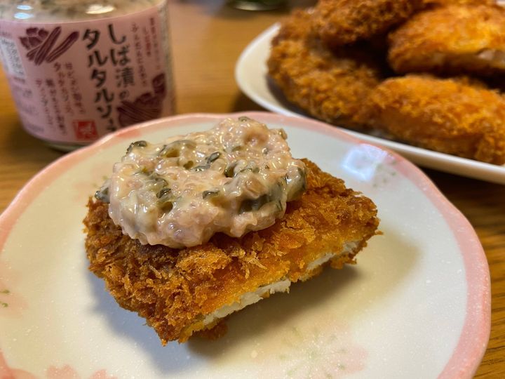 酸味がしっかりと効いて、しば漬の食感もアクセントになり、とっても美味しいです。夏向けの爽やかなタルタルソースかなと感じました!