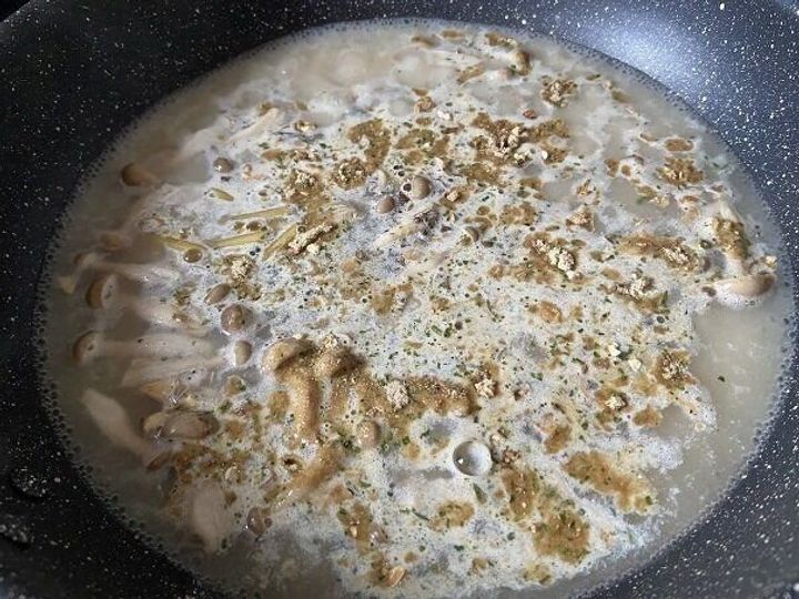 一緒に冷蔵庫に余っていたしめじも入れて調理しました。