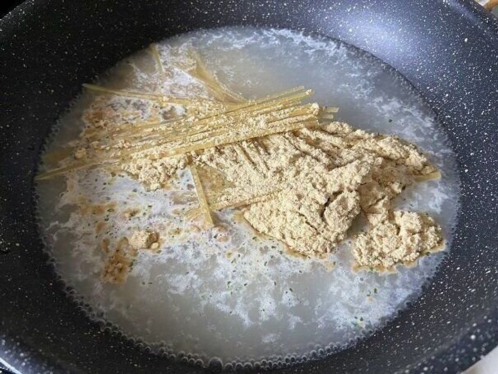 フライパンに500mlの水を入れて沸騰したら袋の中身を全て入れて10分ほど煮るだけ。