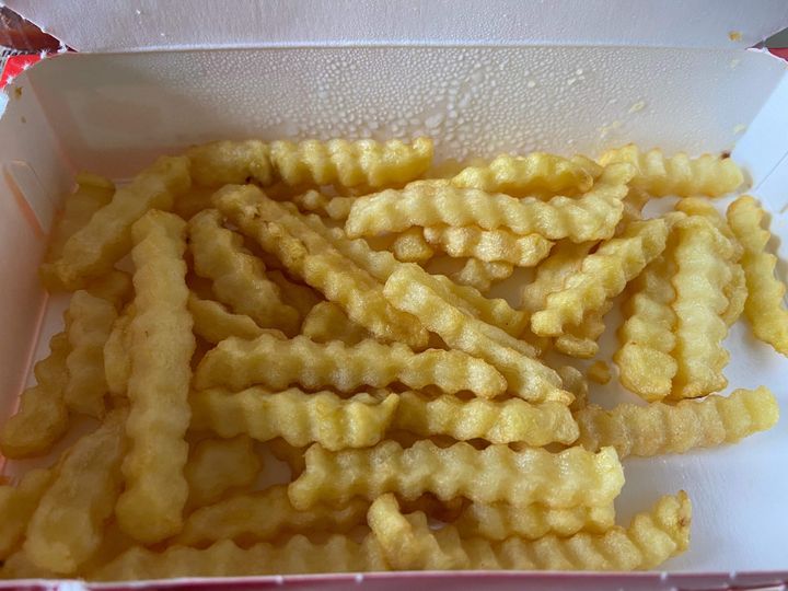 しんなりした部分もありますが、カリッとサクッとしている部分もありレンジで温めただけとは思えない食感でとってもおいしいです。波型にカットされたクリンクルカットはほどよい太さで周りはカリッと、中はほっくりした食感。