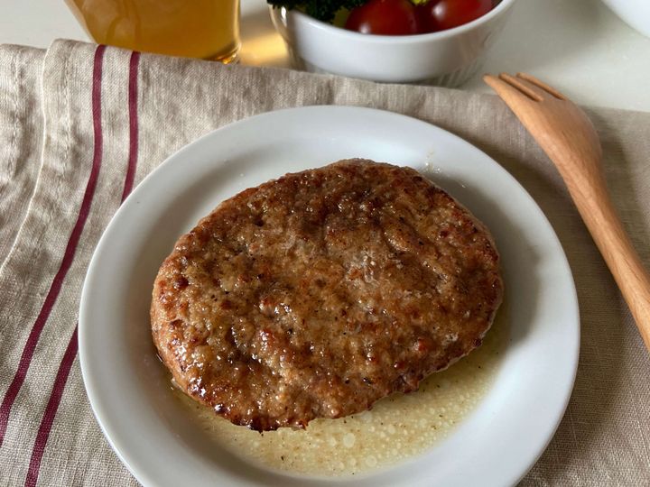 お肉はあらびきで食べ応えがあり、肉汁もたっぷり。3分温めただけで本格的なハンバーグが味わえるのはうれしいですね。