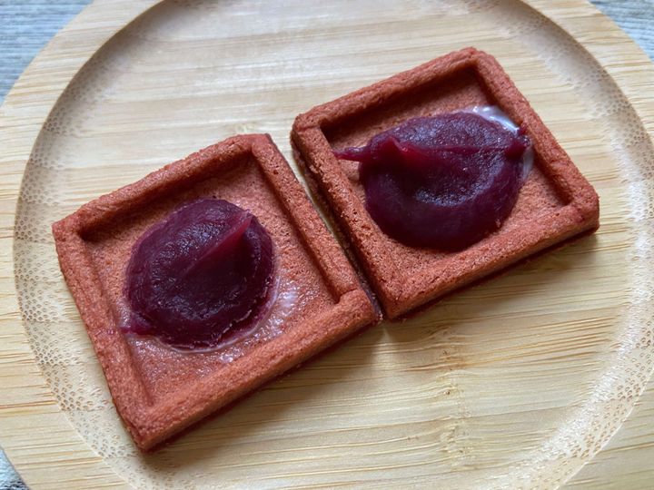 サンドされたクッキーの中には濃厚なラズベリーのガナッシュが!ホワイトチョコ・ラズベリー・バターをふんだんに使用しているそうで、その食感はとにかくねっとりまったり!甘酸っぱいラズベリーの風味が口いっぱいに広がって、サクサクのクッキーとの相性も抜群。