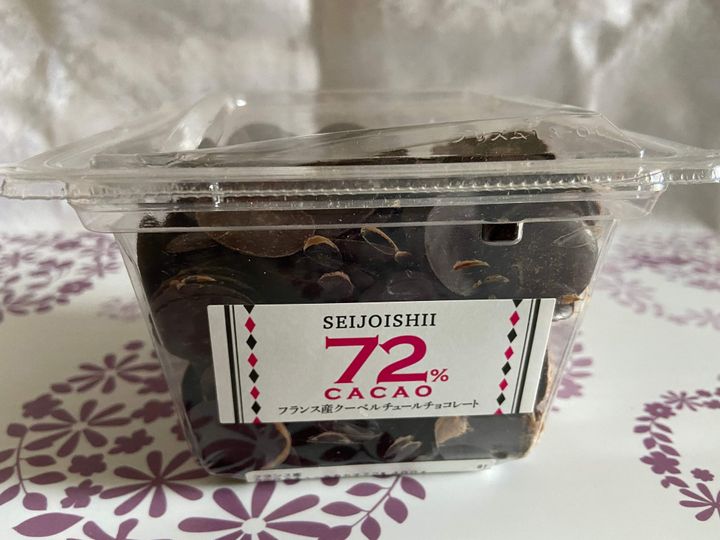 フランスで最も歴史のあるチョコレートメーカー「セモア社」のクーベルチュールチョコレート。成城石井にはカカオの濃度35%~85%のクーベルチュールチョコレートが並んでいます。筆者はビターテイストが好きなので72%を選んで購入してきました。(購入時価格:1070円税込)