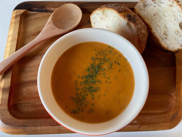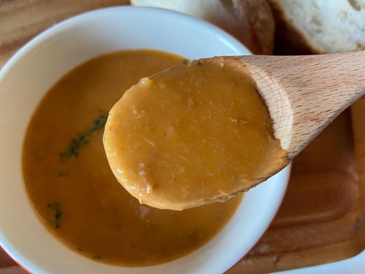 濃い蟹の風味にまろやかでクリーミーなスープは、つけパンスタイルで食べても最高!