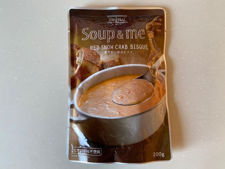 成城石井オリジナル商品の「スープ&ミー紅ずわい蟹のビスク」(購入時:431円税込)。