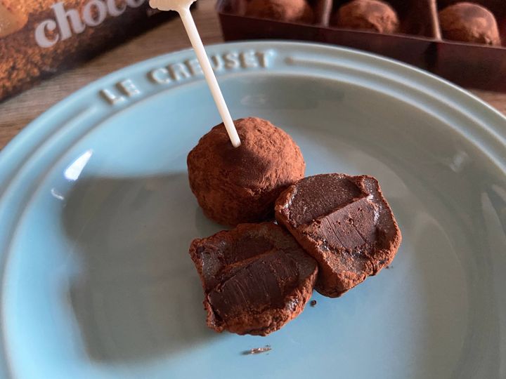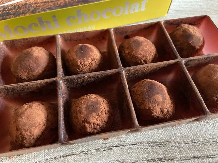 まろやかで繊細なガナッシュチョコをお餅で包んだとのこと。食べてみるとガナッシュチョコがとっても濃厚でクリーミー。ほどよい甘さでなめらかな食感、とろける味わいです。お餅はとっても柔らかく、もちもちのお餅となめらかなガナッシュチョコとの食感も抜群に合います!