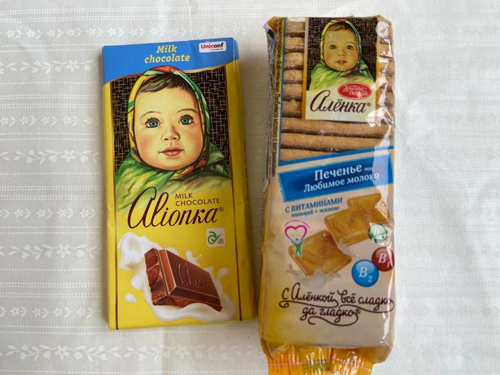 こちらはロシアから直輸入「アリョンカビスケット」(購入時:107円)と、「アリョンカチョコレート」(購入時:107円税込)です。