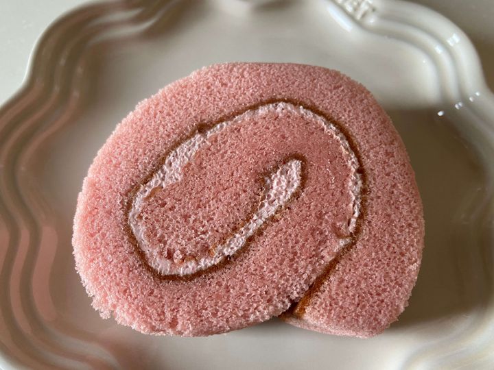 こちらはピンク色がかわいらしい「いちごロールケーキ」(購入時:168円)です。
