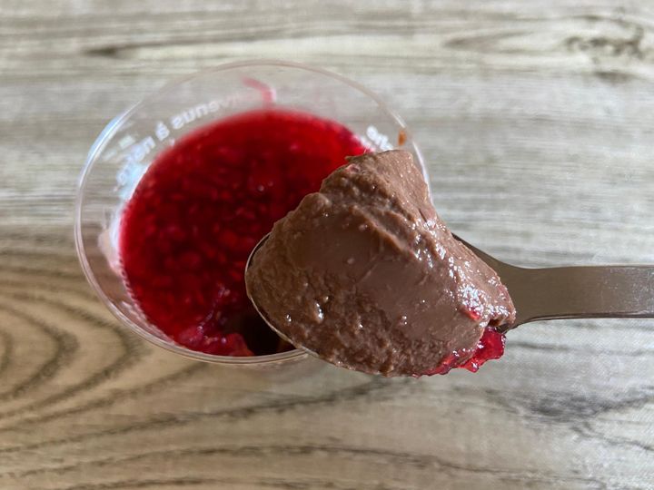 なめらかでまったりとした食感のチョコプリンにたっぷりのフランボワーズのジュレ、絶妙なバランスでお互いの味を引き立てつつ、それぞれもしっかり主張がありおいしい。相性抜群のちょっとリッチな大人向けスイーツで大満足でした。