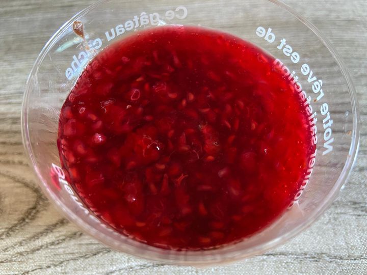 ジュレだけ食べてみると、爽やかな酸味とベリーの風味が濃くてとってもおいしい!プチっと弾ける種の食感もいいですね。