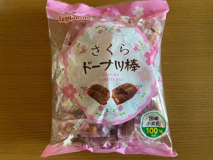 黒糖ドーナツ棒は34本入り、今回のさくらドーナツ棒は32本入りで価格は同じです。