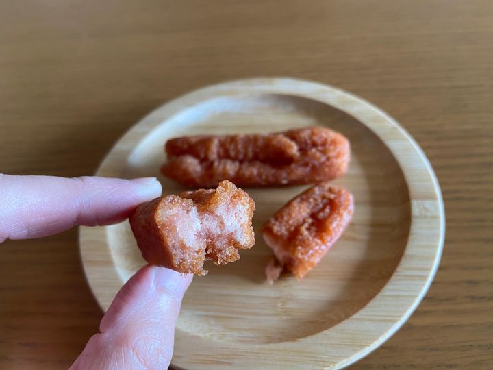食べてみるととってもおいしい!黒糖ドーナツ棒のサクッとじゅわっと感はそのままに、爽やかな桜の風味が口の中にふわっと広がります。中の生地もピンク色で見た目も味も春を感じるおいしさ!