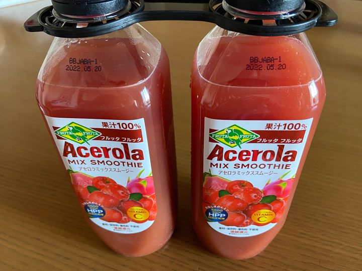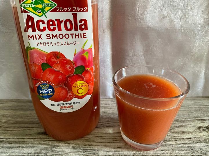 タイミング良く値引きされていたのがきっかけで買ってみた「アセロラミックススムージー」(購入時:477円)。これがおいしくて大正解でした。