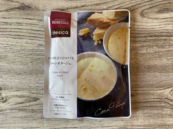 成城石井こだわりの「desica」シリーズのひとつ、「チーズ仕立てのコクうまコーンポタージュ」(購入時:431円)を買ってみました。