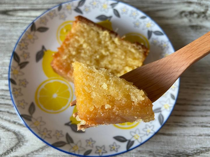 その見た目通り、いやそれ以上にとってもしっとりしていてバターの風味にレモンの爽やかさが感じられるおいしいケーキです。レモンの甘さと酸っぱさがしっかり味わえ、ラム酒の風味も感じられる大人向けテイスト。