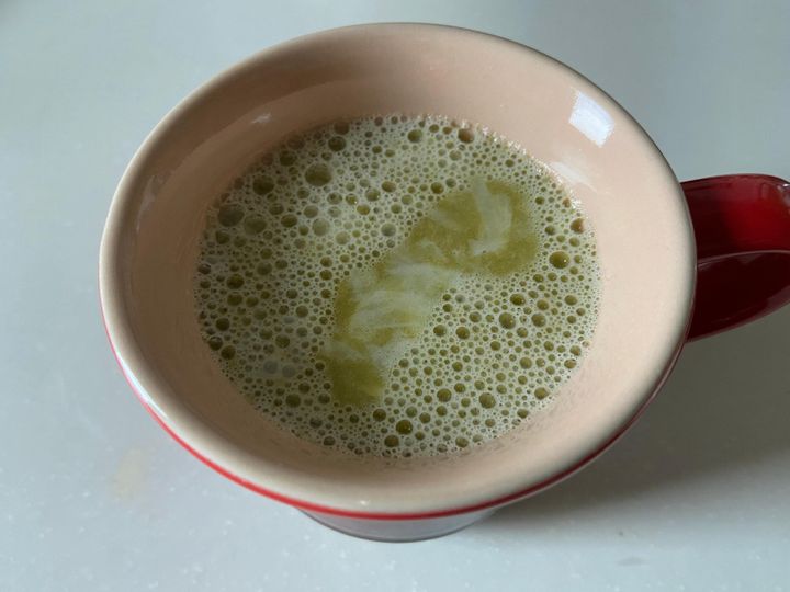 温めた牛乳にピスタチオスプレッドを混ぜれば、ホットピスタチオミルクに。