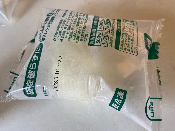 加熱が終わったらすぐに袋を破らずに、そのまま1~2分蒸らしてくださいとのこと。袋が蒸気でパンパンになって熱いので取り出す際は注意が必要です。