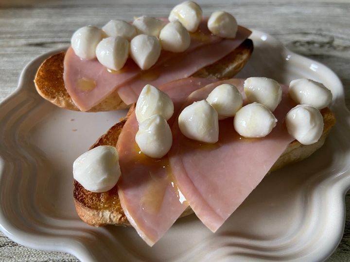 トーストしたパンにハムと一緒に合わせて。オリーブオイルを少量かけただけでシンプルですが、素材のおいしさが感じられて最高です!