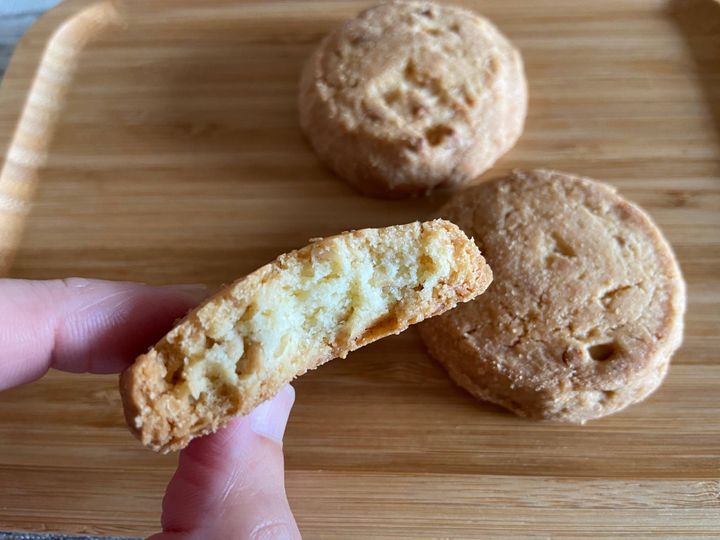 サクサクほろほろっとしてパサつきはなく、バターのコクと旨みたっぷり、なのにしつこさはなくとてもおいしいです。2種類の刻みナッツがカリッと、食感と味に香ばしさがプラスされ、あとをひくおいしさ。