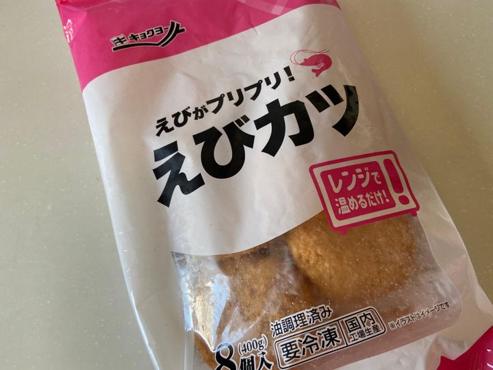 ピンクのパッケージが目をひく「えびカツ」はえびとタチウオ、玉ねぎなどが使用されています。
