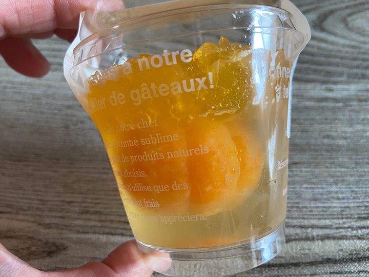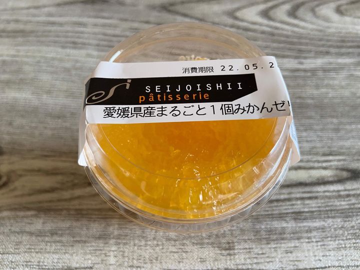 成城石井のスイーツコーナーに清涼感漂うカップスイーツが登場していました!「愛媛県産まるごと1個みかんゼリー」(購入時:323円)です。