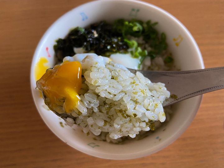 ごま油が入っていて香りが良く、海苔の風味も最高です。ごはん200gだと塩気が強めに感じたので、250gくらいがちょうどいいかもしれません。温泉卵をトッピングして崩しながら食べたらもう最高。「やみつき必至!」「おいしすぎる!」とSNSでも人気です。