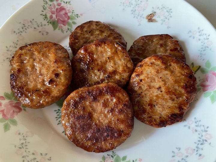 マスカルポーネロールやディナーロールと、このグリルパティのサイズ感がぴったりでかわいいハンバーガーができました。朝食に出したら筆者の子どもたちも大喜び。