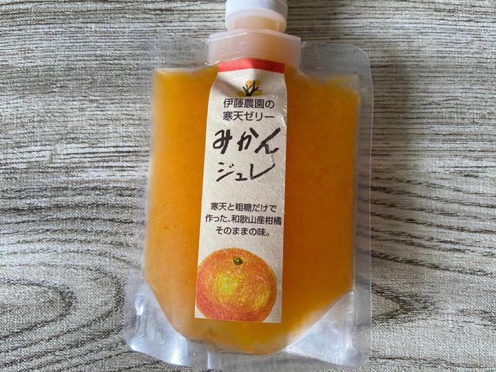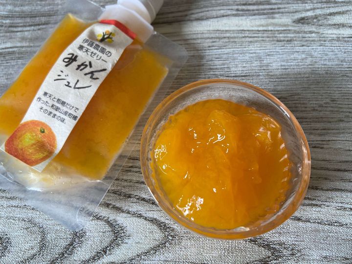 とってもおいしくて感動したのがこちら「伊藤農園の寒天ゼリーみかんジュレ」(購入時:388円)。