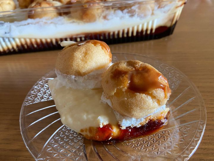 プチシューはたっぷりクリームが入って満足度の高いおいしさ。カラメルはほどよい甘さで食べやすく、プリンと一緒に多めに食べてもくどすぎずとってもおいしいです!