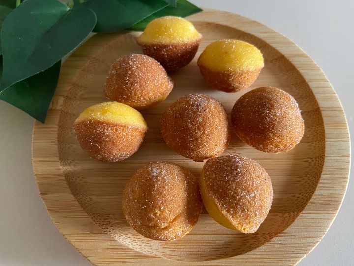 やさしいかぼちゃ色をした鈴の形を模したかすてら。ほんのりお砂糖がまぶされています。