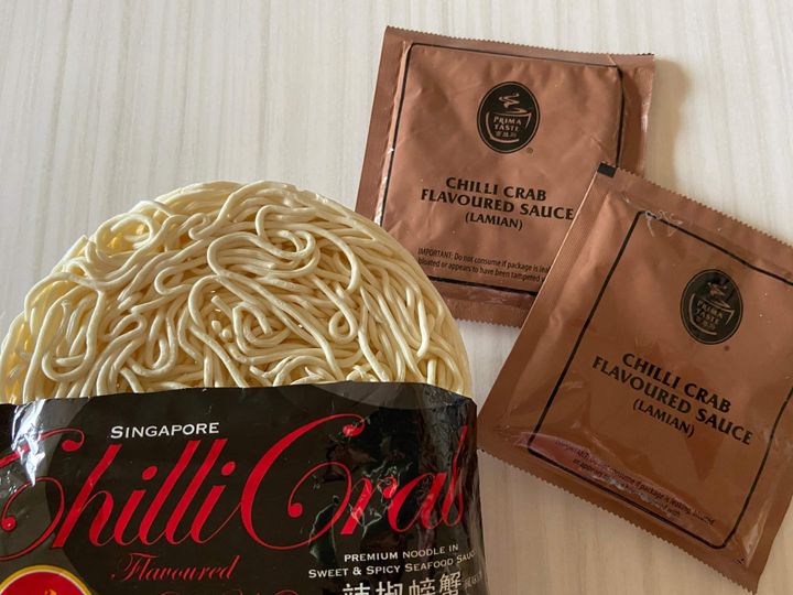 シンガポールの名物料理「チリクラブ」を汁なし麺タイプで食べられる、ちょっと変わったカルディのインスタント麺。シンガポールの本場の味を気軽におうちで楽しむことができるのが魅力です。
