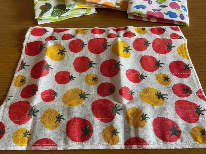 野菜やトマトのカラフルな柄がかわいい「かやのふきん」(購入時:1980円)はコストコの倉庫での販売はなく、オンライン限定での販売品。